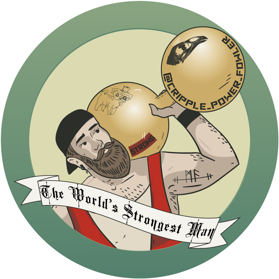 In 2018 my boyfriend, Mitch, began competing in Strongman events, and has moved to Highland Games in 2023. Over the years I’ve designed him a lot of merch to show support. His original logo combines the Nordic runes for M (mannaz) and A (ansuz) despite the fact that his initials are M and F. We decided on ansuz together because it aligned closer with our alphabet, so it wouldn’t need a ton of explanation, and because ansuz means god. Plus this opened up the door to make “Strong MF” merch.